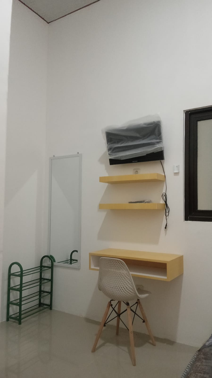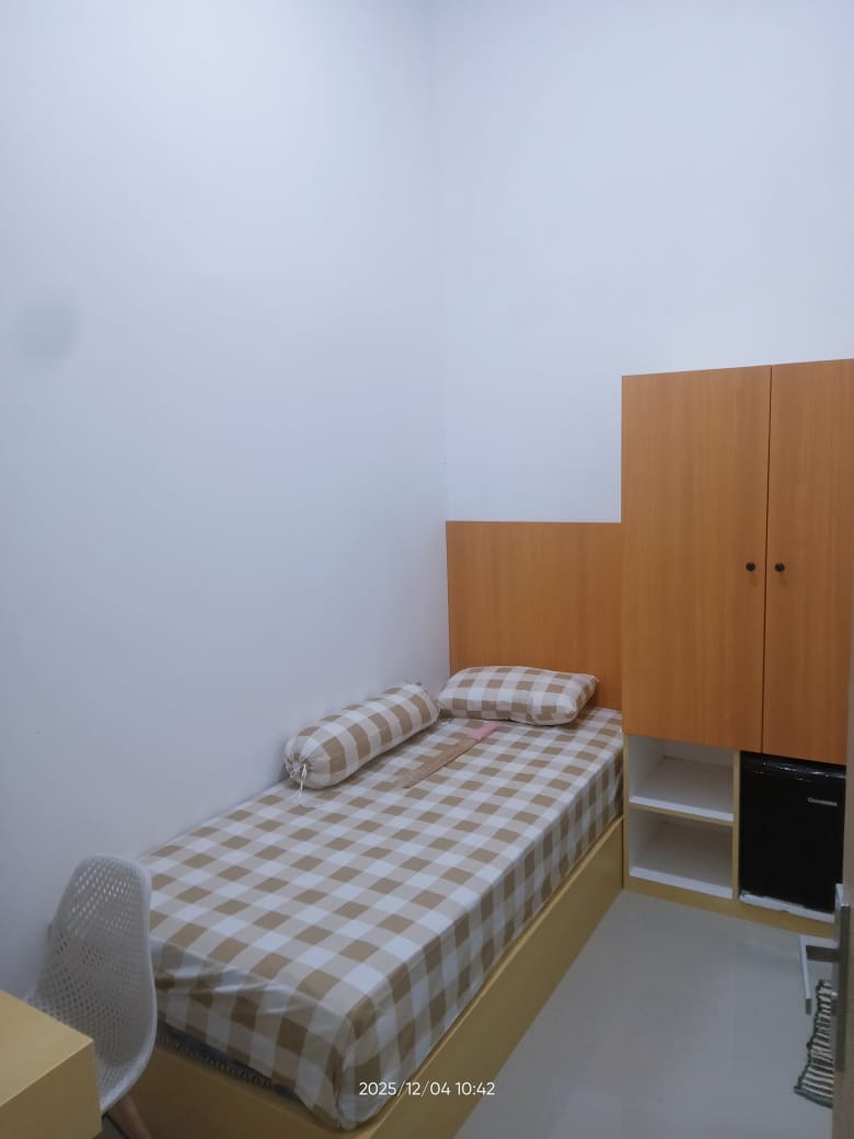 Furnished : AC, smart TV 24", kulkas mini, dipan, springbed, lemari, meja, kursi, sprei